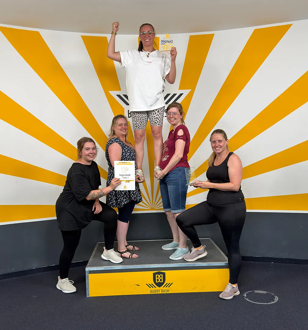 In diesem Jahr führte uns unser Jahresausflug nach Köln zum Buddybash. Wir konnten uns recht schnell in 2 Gruppen aufteilen, („die Muddis“ und „die Chaoten“). Es war ein hartes Kopf an Kopf rennen, das die Muttis nur sehr knapp gewonnen haben. Natürlich gab es für unser Siegerteam und auch die tapferen Verlierer eine kleine Aufmerksamkeit in flüssiger Form. Anschließend ging es weiter zum Griechen nach Plaidt, den wir alle pappsatt wieder verlassen konnten.